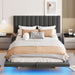 Queen Size Upholstered Hydrualic Platform Floating Bed With LED Light And USB Port - Gray