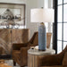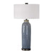 This Table Lamp Lends A Touch Of Old-world, Handcrafted Style With This Ceramic Base Finished In A Distressed Slate Blue Glaze Accented With Oil Rubbed Bronze Accents. The Round Hardback Drum Shade Is A White Linen Fabric. Due To The Nature Of Fired Glazes On Ceramic Lamps, Finishes Will Vary Slightly.