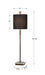 Sleek, Modern Lines Complete This Sophisticated Design Featuring A Delicate Iron Base Finished In A Plated Antique Brass, Accented With A Thick Crystal Slab And A Heavy Disk Finial. A Round Hardback Drum Shade In A Black Linen Fabric Completes This Versatile Piece.