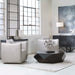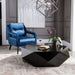 This Unique Geometric Table Features A Low Profile, Perfect For Viewing The Sunburst Top In Mango Veneer With A Worn Black Finish With Natural Distressing, Rubbed To Reveal Honey Undertones.