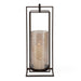 Illuminate Your Space With A Warm Glow From This Textured Glass And Iron Candle Lantern. Designed To Hold A Pillar Candle, It Features A Removable Textured Glass Hurricane And Iron Stand Finished In Dark Bronze With Gold Rub-through Details. One White 3"x 5" Candle Is Included.